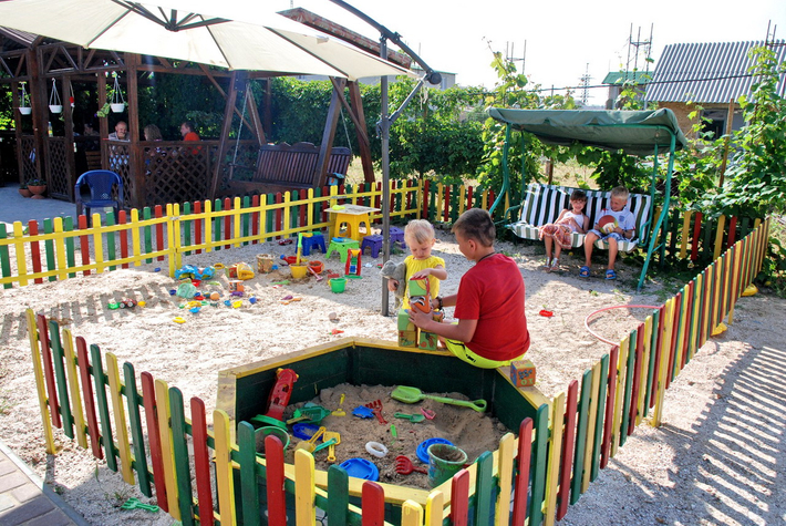 Поездка с детьми будет более комфортной, если в доме установлен кондиционер и постоянно есть горячая вода. Лучше выбрать жилье с игровой площадкой во дворе. Она может состоять из песочницы и нескольких качелей или иметь батуты, карусели, горки и даже небольшой надувной бассейн. Дети будут с удовольствием в нем плескаться, ведь это позволит им проще переносить летний зной.